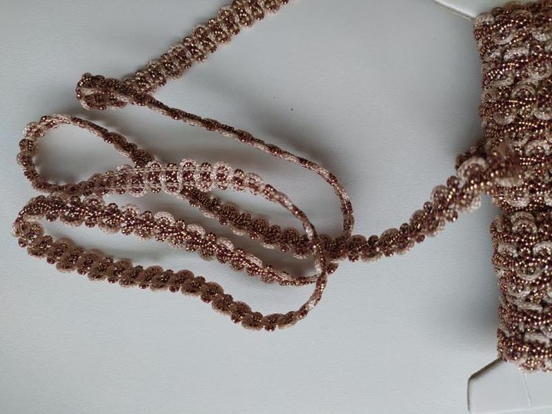Leonský pásik  béžovo-zlatý-bordová, šírka 16 mm. Materiál 80%polyester, 10 %viskóza, 10 % kovové vlákno